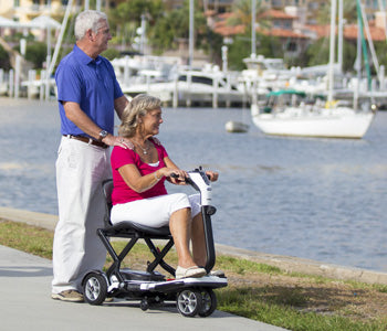 The Go-Go Folding Scooter is sleek, stylish, and extremely easy to operate, making it the perfect travel mobility scooter choice.
